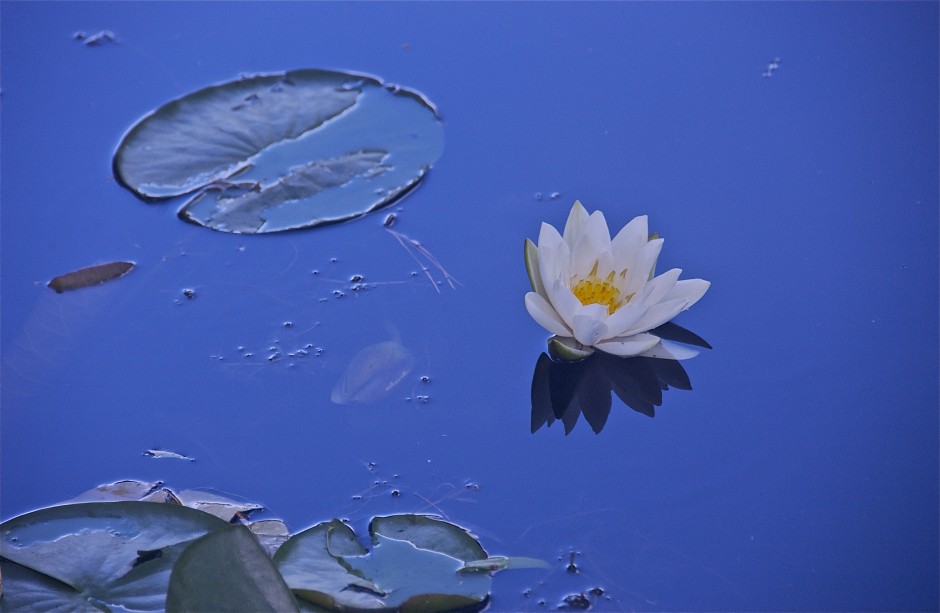 Pond lilies; shadows, reflections; Queenstown Gardens, South Island, New Zealand. January 2014.