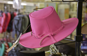 Wine bags, hats; on the rack in the Outback; Erldunda, Northern Territory, Australia. January 2014.