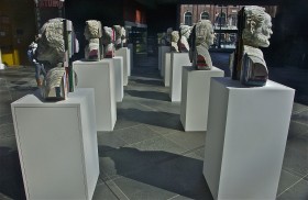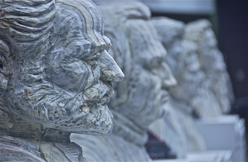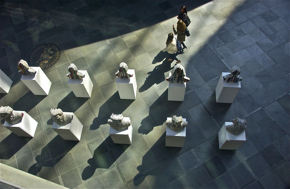 Classical Composer Busts Carved from Books; the Work of Long-Bin Chen; Kimmel Center; Philadelphia, Pennsylvania, USA