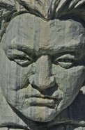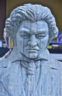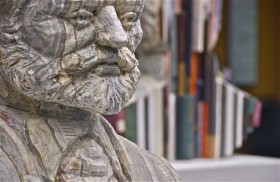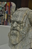 Speaks volumes; carved from books; classical composer; Kimmel Center; Philadelphia, Pennsylvania, USA. March 2014.