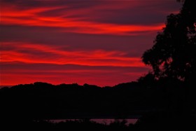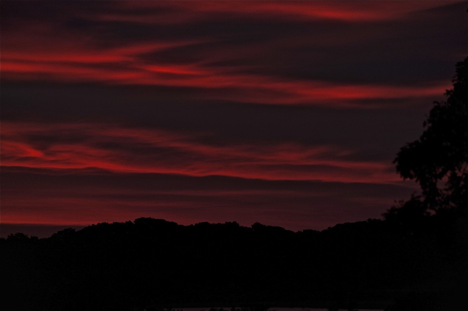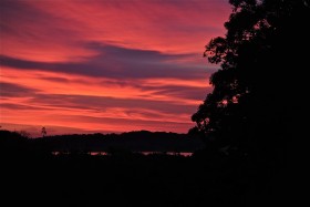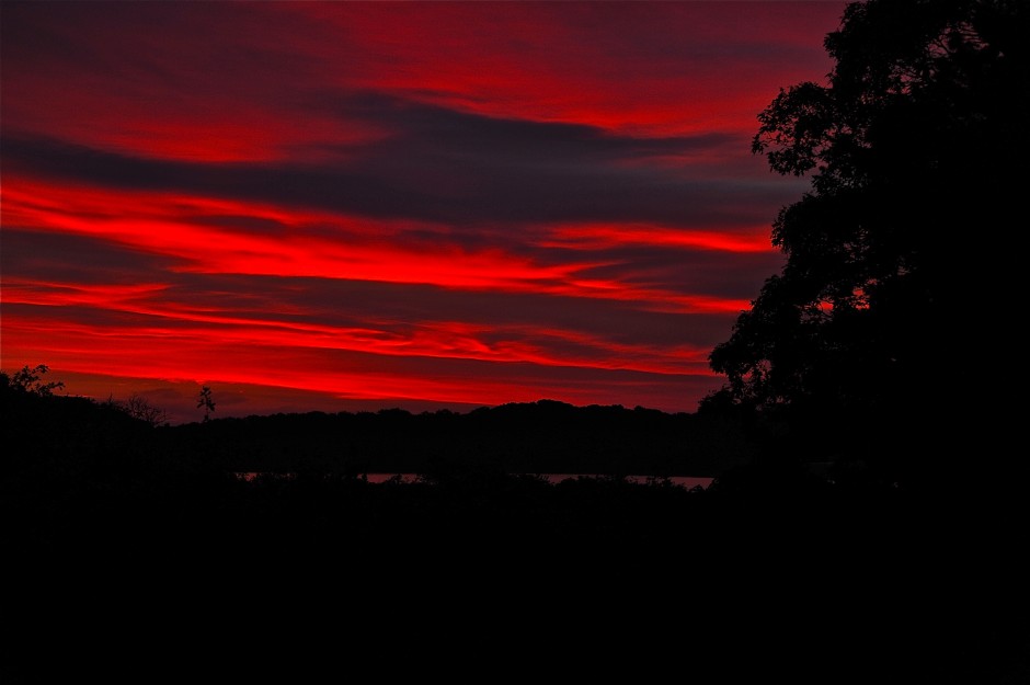 Heavens afire; Trapp’s Pond; Barnhouse; Edgartown, Martha’s Vineyard, Massachusetts, USA. August 2014.