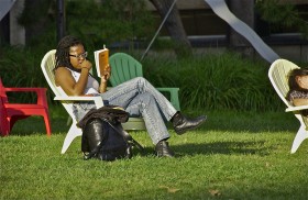 Lost in a book; Temple University; Philadelphia, Pennsylvania, USA. September 2014.