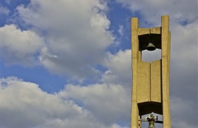 Bell Tower; sweep of sky; Temple University; Philadelphia, Pennsylvania, USA. September 2014.