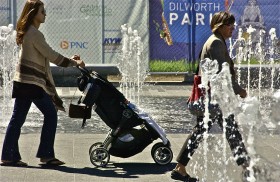Mid-day stroll; Dilworth Park; Philadelphia, Pennsylvania, USA. September 2014.