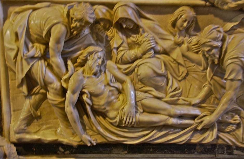 Christ from the cross; sculpture detail; Santa Maria Gloriosa dei Frari; Venice, Italy. December 2014.