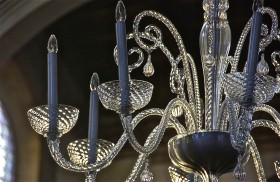 Chandelier detail; sanctuary interior; Murano, Venice. December 2014.