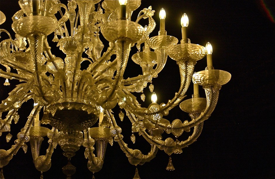 Glass alight; chandelier detail; Doge’s Palace; St. Mark’s Square; Venice, Italy. December 2014.