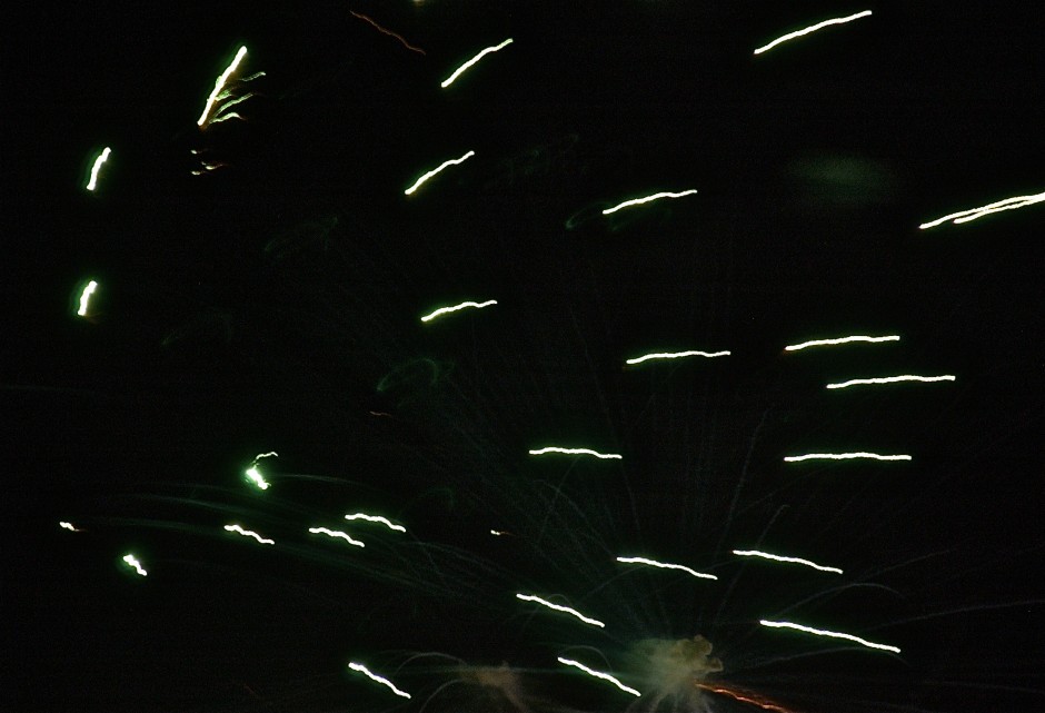 Bits of string; fireworks over the Lagoon; St. Mark’s Square, Venice, Italy. December 2014.