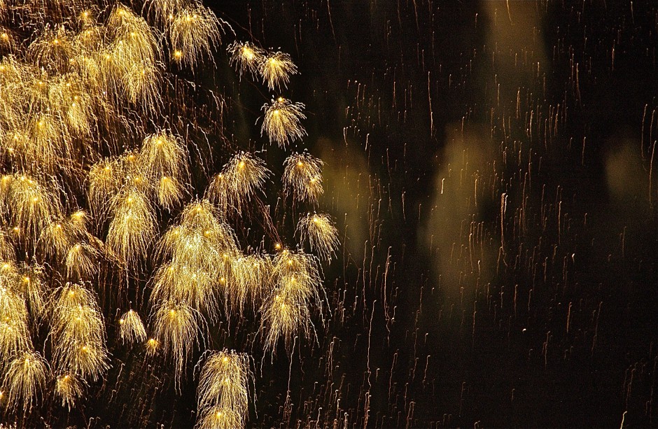 Curtain of gold; fireworks over the Lagoon; St. Mark’s Square, Venice, Italy. December 2014.