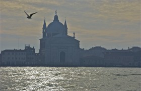 Silhouetted frame; San Giorgio Maggiore; Santa Maria della Salute area; Venice, Italy. December 2014.