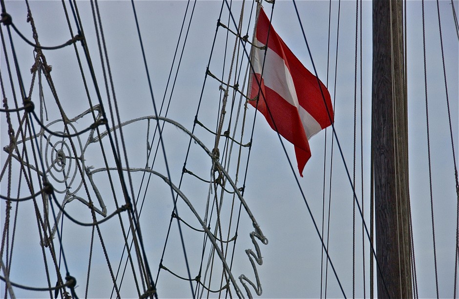 Flag in the rigging near Santa Maria della Salute; Venice, Italy. December 2014.