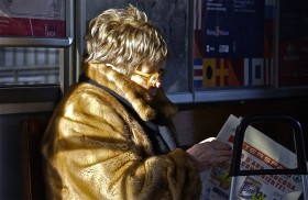 Waiting, reading, sun-struck; the quiet side; Venice, Italy. December 2014.
