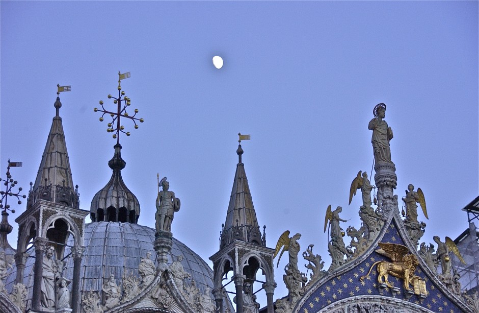 From a tip of St. Mark’s to the Moon; Doge’s Palace area; Venice, Italy. December 2014.