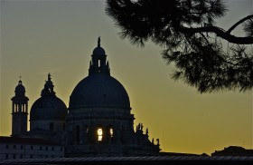 Sunset silhouette; Santa Maria della Salute; Doge’s Palace area; Venice, Italy. December 2014.