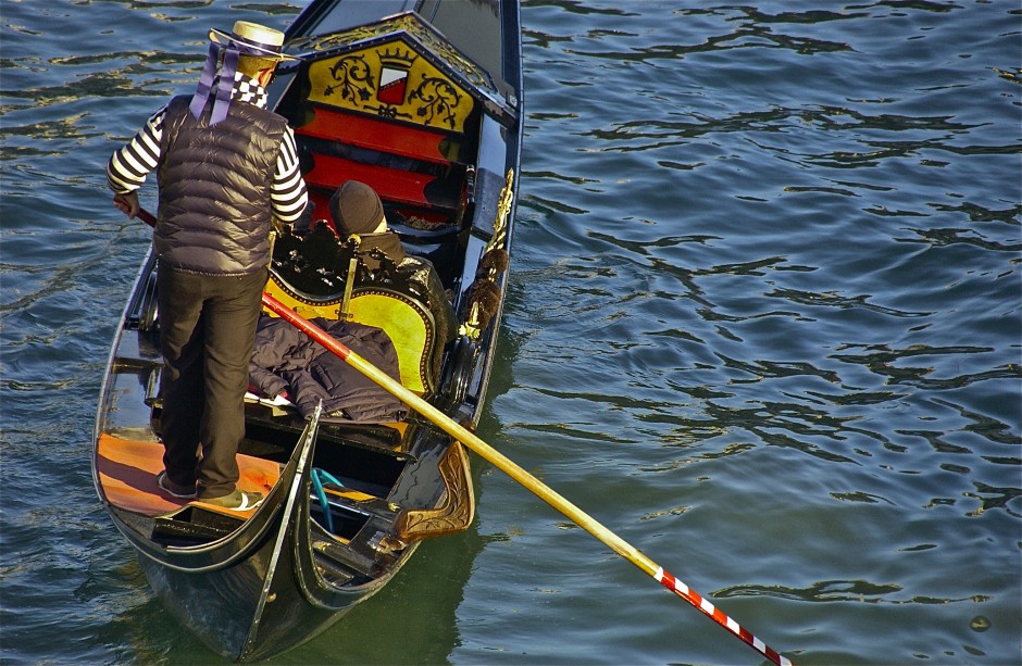 Gondolier in Winter; Venice, Italy. December 2014.