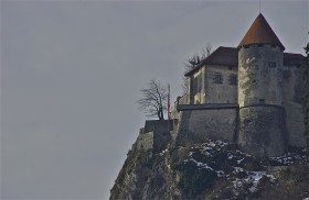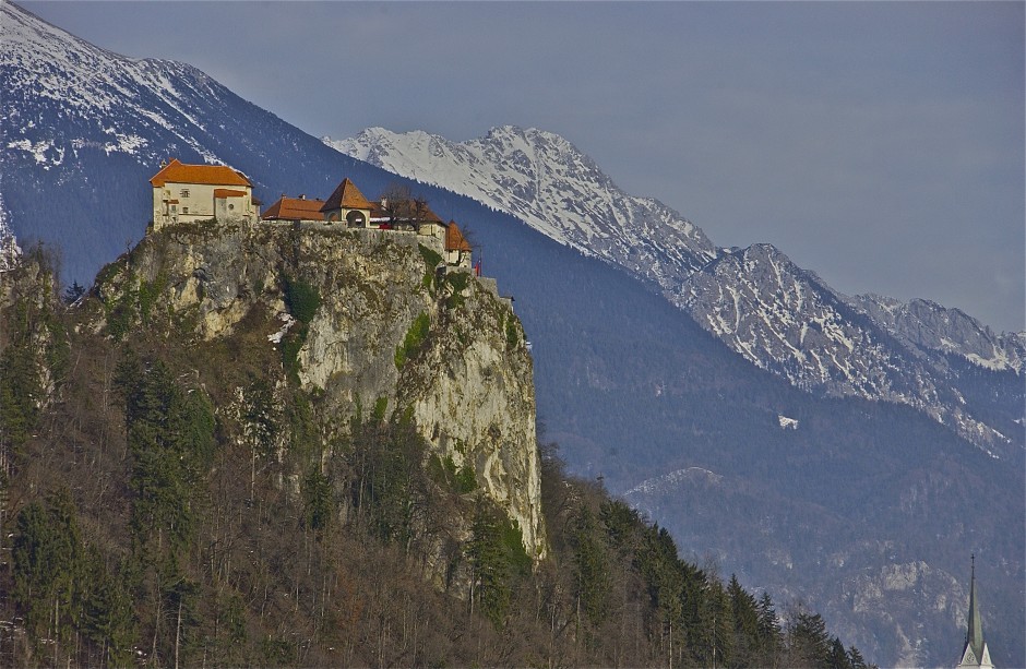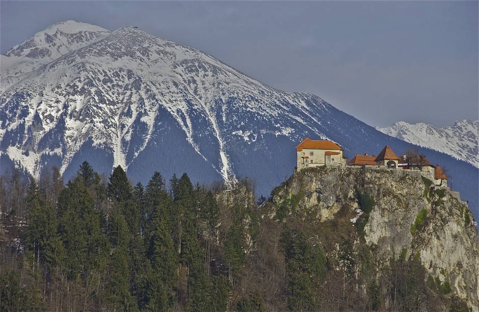 Gray skies over the castle; Lake Bled, Slovenia. January 2015.