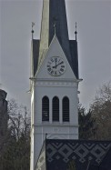 Steeple detail; Church of St. Martin; Lake Bled, Slovenia. January 2015.