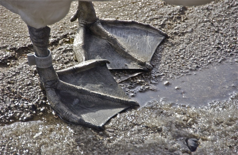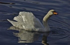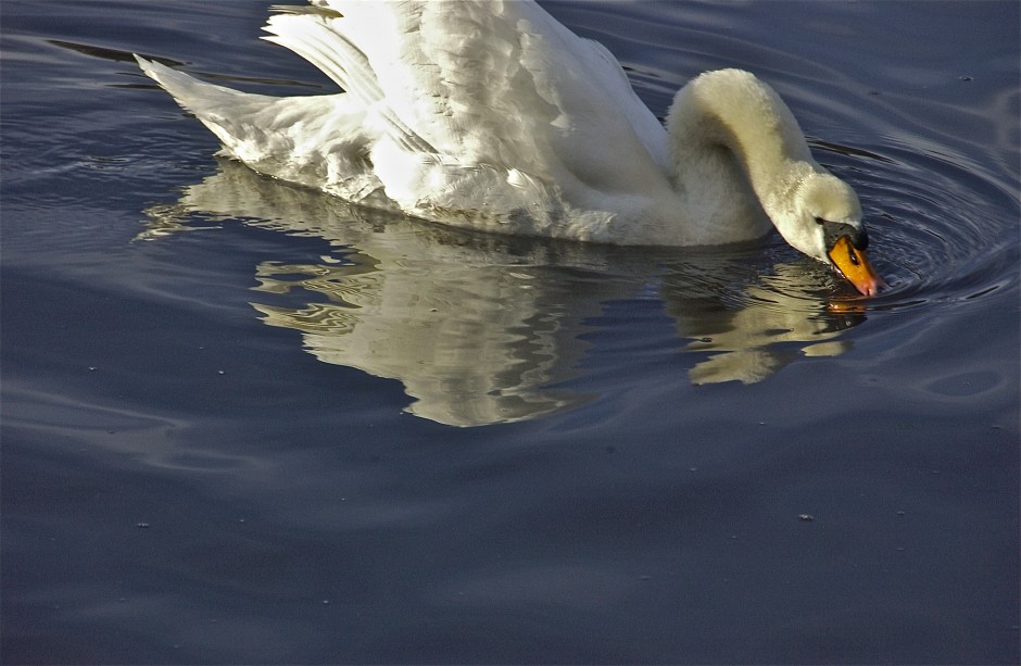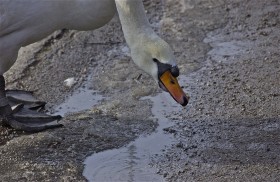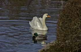 At the edge; swan, mallard; Lake Bled, Slovenia. January 2015.