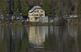 Green shutters; Lake Bled, Slovenia. January 2015.