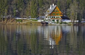 Reflections in winter; Lake Bled, Slovenia. January 2015.