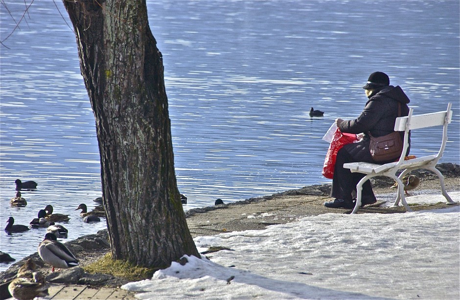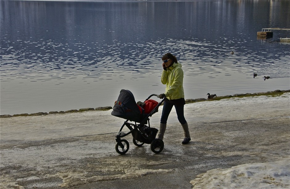 Multi-tasking; Lake Bled, Slovenia. January 2015.