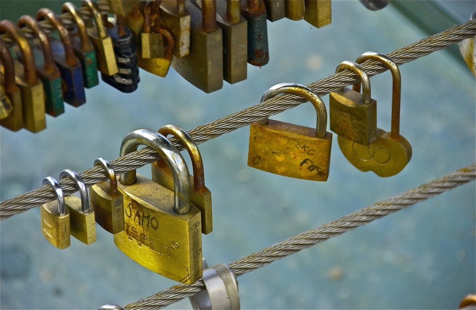 Love lock; on the bridge; Ljubljana, Slovenia. January 2015