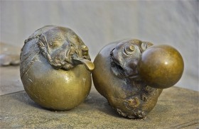 On the Bridge; Sculpture, Castings, Love Locks; Ljubljana, Slovenia