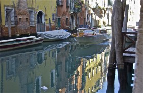 Tranquility on a canal; wandering; day into night; Venice, Italy. January 2015.