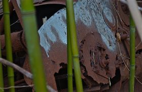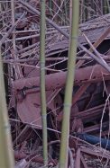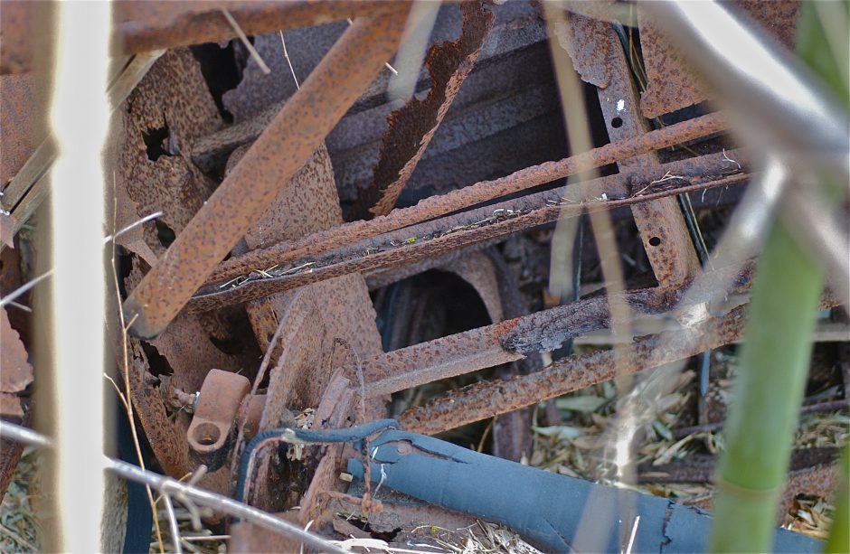 Bamboo Curtain, Rusted Farm Machinery; Music Street, West Tisbury, Martha’s Vineyard, Massachusetts, USA