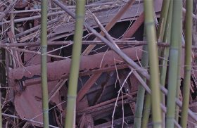 Rusty abstract; bamboo veil; Music Street, West Tisbury, Martha’s Vineyard, Massachusetts, USA. May 2015.