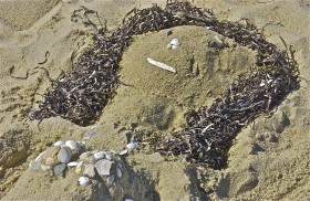 Portrait in sea grass, sand and shells; South Beach; Edgartown, Martha’s Vineyard, Massachusetts, USA. August 2015.