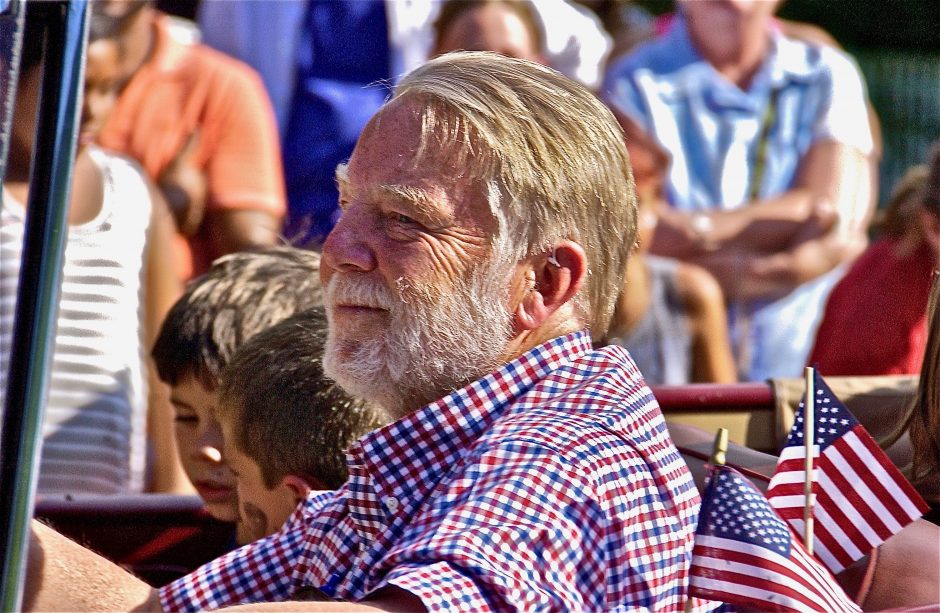Vet; Fourth of July parade; Edgartown, Martha’s Vineyard, Massachusetts, USA. July 2015.