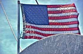 Old Glory; Menemsha Harbor, Martha’s Vineyard, Massachusetts, USA. August 2015