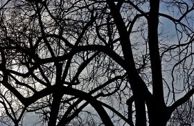 Entwined in silhouette; Philadelphia Zoo; Philadelphia, Pennsylvania, USA. November 2013.