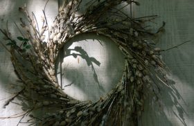 Up close; wreath details; Wyncote, Pennsylvania, USA. September 2013.