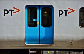 Light rail train detail; Melbourne, Australia. January, 2014.